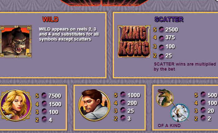 Символы слота King Kong, таблица выплат и коэффициенты выплат